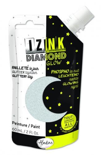 Aladine - Izink Diamond Glow - Pittura glitterata il giorno, fosforescente la notte - Ultra Couvante, qualsiasi supporto - DIY e attività creative - Bottiglia flessibile da 60 ml - Argento