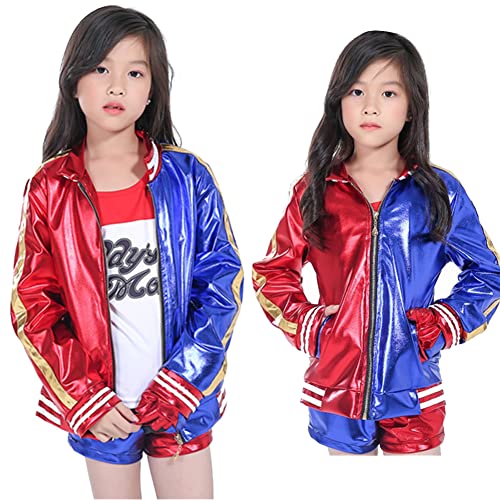 Alaiyaky Quinn Bambina Cosplay Costume,Carnevale Halloween Cosplay Party Costume Composto da Giacca,Pantaloncini,T-shirt,Guanti,Collare (110, Rosso E Blu)