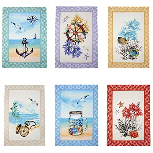 ALAMBRA Set Strofinacci da Cucina Linea Shabby Style Home Sea Mare Stampa Digitale Fantasie Marine (6 Pezzi)