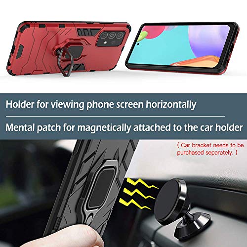 ALAMO Cover Armor per Samsung Galaxy A52 / A52 5G / A52S 5G, Custodia TPU+PC Antiurto con Anello Supporto - Rosso