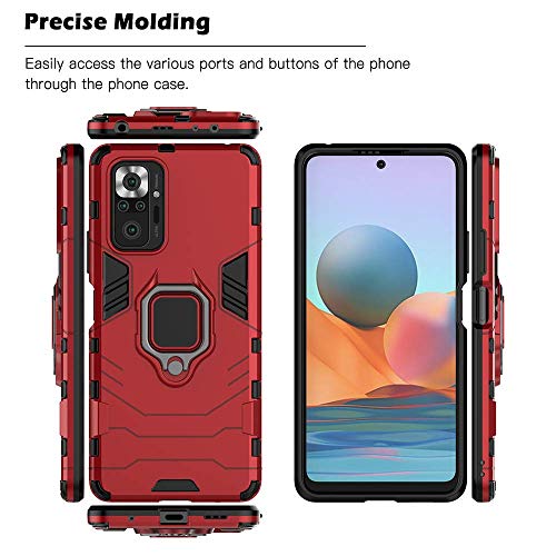 ALAMO Cover Armor per Xiaomi Redmi Note 10 PRO, Custodia TPU+PC Antiurto con Anello Supporto - Rosso