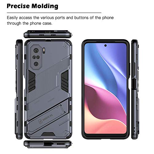 ALAMO Custodia per Xiaomi Poco F3, Case Armor PC+TPU Rugged Antiurto Cover con Cavalletto, Cover + 2 Pezzi Vetro Temperato Pellicola - Grigio.