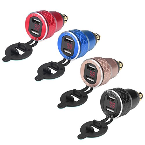 Alamor 12V-24V 4.2A Voltmetro Rosso Moto Dual Usb Charger Din Socket per moto Bmw - nero