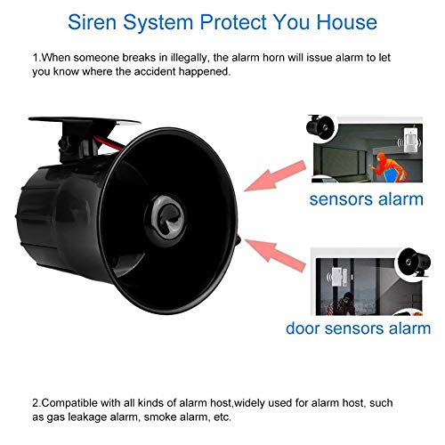 Wired Siren: questa sirena per allarme DC 12V è compatibile con tutti i tipi di host di allarme.Costruito con materiale ABS di alta qualità, ignifugo, sicuro e resistente all'uso.È ampiamente usato per l'host di allarme.