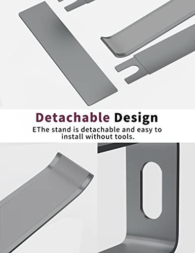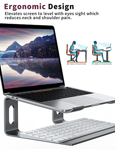 ALASHI Supporto per laptop per scrivania, Supporto ergonomico per notebook, Ascensore per laptop in metallo rimovibile, Supporto per montaggio di raffreddamento per PC da 10 a 15,6 pollici, grigio
