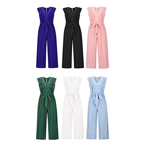 Design: elegante tuta senza maniche con scollo a V, tinta unita, tutina plissettata con volant, tuta con pantaloni a vita alta e gamba larga, gamba larga, tutina lunga per le donne che ti rende più formale ed elegante.