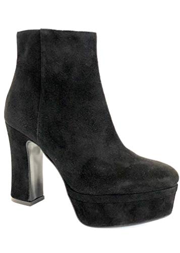 ALBANO 1077 - Tronchetto Donna camoscio Tacco 12 cm e Plateau 3 cm (38 - CAMOSCIO Nero)