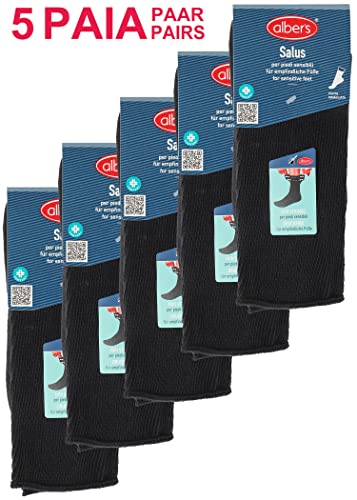 Alber's SALUS - 5 Paia - Calza da Uomo in Cotone di Media Lunghezza, Senza Elastico, Polsino Largo e Super Comfort, Base in Spugna, per Piedi Sensibili | Nero | 42-45