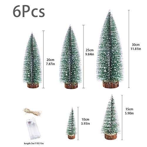 5 alberi di Natale artificiali mini albero di Natale e luci di corda di filo di 3 m / 3.28 cantieri, in miniatura decorazione da tavolo per interni mini verde alberi ornamenti alberi da tavolo per la