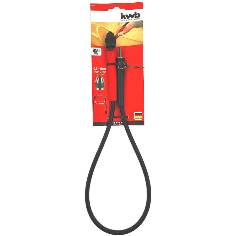 Albero pieghevole lunghezza 950 mm con mandrino autoserrante per punta da trapano da 0,5 a 6 mm, arco di piega maggiore di 150 mm. Massimo 3000 UPM (Giri al minuto) per lavori di precisione nel legno, plastica, ferro e nei metalli non ferrosi. Ideale anche per il modellismo e lavori di incisione.