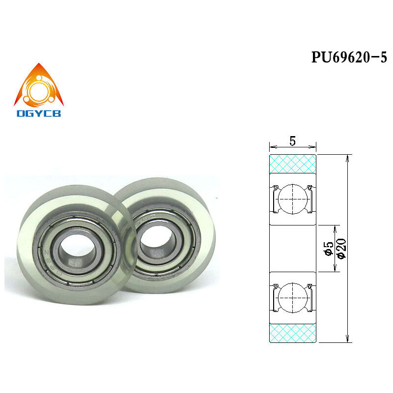 NO.: PU69620-5 Materiale: Poliuretano Forma: Piatto Diametro interno: 6mm Diametro esterno: 20mm Larghezza: 5mm Cuscinetto NO.: 696Z Dimensioni del cuscinetto: 6x15x5mm Materiale del cuscinetto: acciaio del cuscinetto Lubrificazione: Grasso Caratteristica: Low nosie, Run smooth, alta durata, alto carico... Applicazione: mobili, armadietti, porte e finestre, elettrodomestici,. .. Ecc. Foro dell'albero da 6mm rullo rivestito in poliuretano da 20mm di diametro PU69620-5 cuscinetto modellato in gomma per tenditore a cinghia piatta per ruota guida in PU
