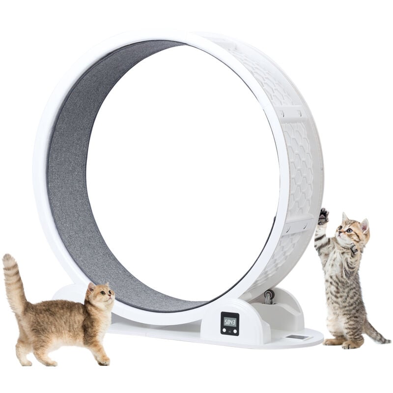 Descrizione: Tapis roulant per gatti di grandi dimensioni: questa ruota di allenamento è molto stabile sulla base, quindi è improbabile che anche il gatto più attivo e atletico si ribalta. Questo tapis roulant è abbastanza grande da far sentire anche il gatto più grande come camminare a tutta velocità. Mantieni il gatto in movimento: il gatto da compagnia è spesso in sovrappeso mentre trascorrono lunghe ore al chiuso e fanno poco esercizio. Il tapis roulant per gatti interni offre un modo meraviglioso per i gatti di muoversi e ridurre il rischio di essere in sovrappeso. La pista del tappeto può essere facilmente attaccata alla ruota e fornisce una presa sicura per la corsa. Può anche servire da giocattolo a graffio e fornire supporto per i graffi divertenti. Materiale premium: le ruote silenziose PP migliorate rendono il tapis roulant più silenzioso senza disturbare i vicini. Nessun rischio per le zampe del gatto. Facile da montare: ci sono solo tolleranze estremamente strette tra