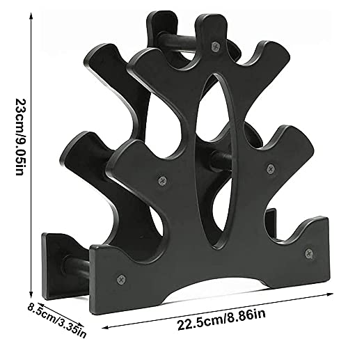 Albero con Manubri, Porta Manubri 3 Livelli, Piccolo Porta Manubri Rack, Design Treppiede, Funzione Archiviazione, per 6 Manubri Ginnastica Fino 12 Kg per Casa, Ufficio, Palestra (Nero)