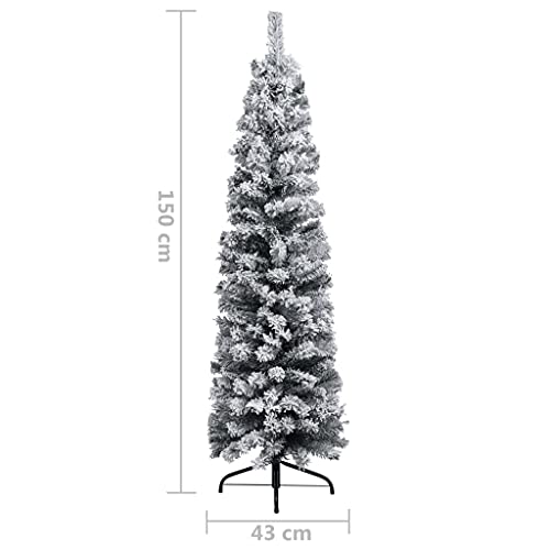 Albero di Natale Artificiale, Albero di Natale Slim con Supporto in Metallo, Decorazione Natalizia da Interno Esterno, PVC (Innevato, 150cm)