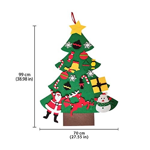 Albero di Natale in Feltro Feltro Albero Natale, 3.3ft/100cm della Feltolta di DIY con Gancio Autoadesivo, 24 Ornamenti Staccabili Regali di Natale per Bambini