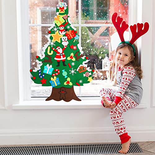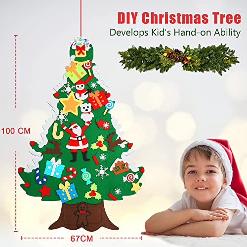 Albero Natale Feltro DIY Albero Natale Artificiale Addobbi Natalizie Educativo Giocattolo Regalo Bambini per Decorazioni Murali Natalizie da Parete, Porte, Ufficio, Aula - 40 Ornamenti (100cm*60cm)