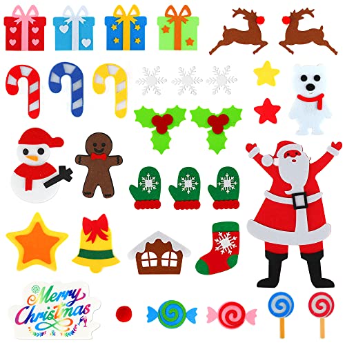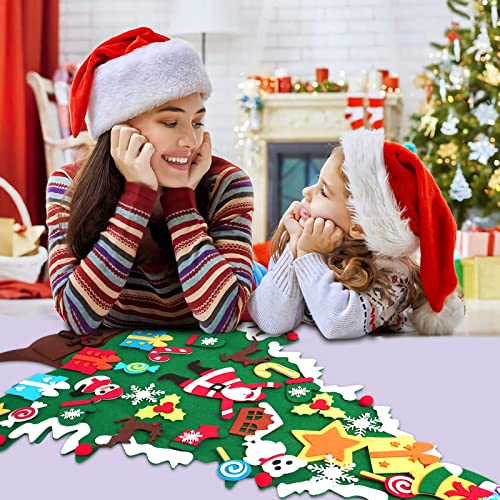FELTRO MORBIDO E ALTA QUALITÀ: Questo albero di Natale artificiale è realizzato in tessuto morbido resistente e inodore, adatto per Natale e non danneggerà i bambini, accessori fai-da-te sono tutti con l'adesivo magico che puoi incollarli rapidamente all'albero di feltro, aggiungi un po 'di allegra atmosfera natalizia a casa tua.
