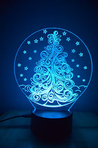 Albero di Natale 3D LED Illusione Lampada Luce Notte Accanto Colori Tavolo Auto Cambiamento Touch Interruttore Decorazione Della Scrivania Telecomando