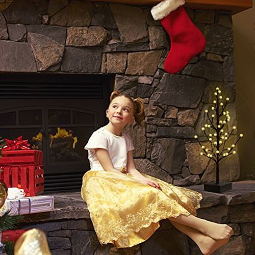 Albero di Natale con luci LED con 48er LED illuminato, Albero LED luci come Addobbi Natalizi, altezza 60 cm, Bianco caldo, 3 AA Batterie, Marrone ramo Ramo Luce a forma di albero rinterno e esterno