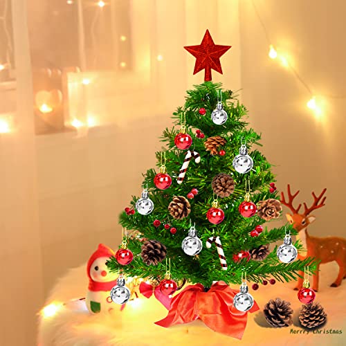 Albero di Natale da Tavolo, Mini Albero di Natale Artificiale con Puntale e 48 Pezzi Ornamenti, Piccolo Albero di Natale per Tavolo/Scrivania/Casa, 20inch