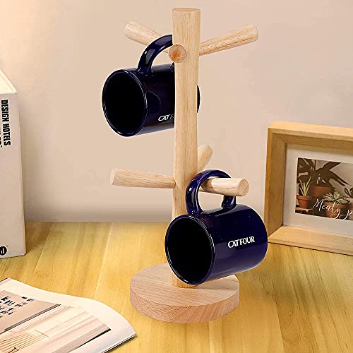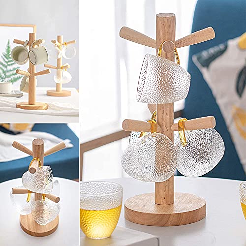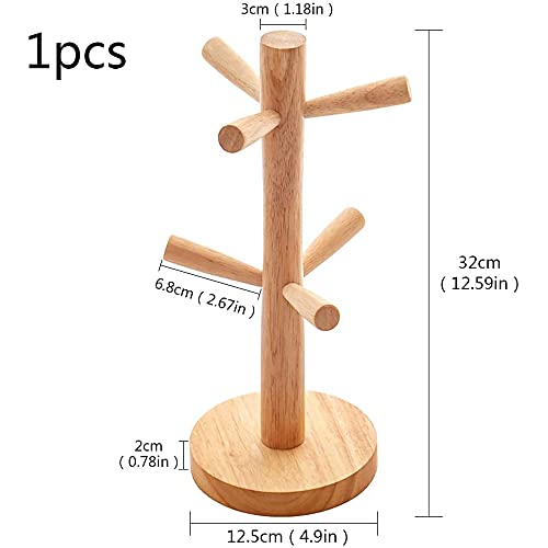 Albero Porta Tazze in Legno, Supporto per Albero Della Tazza, Portabicchieri Albero, Supporto per l'Albero Della Tazza in Legno con 6 Ganci per Appendere e Base Ponderata, per Tazza Caffè, Tazza Tè