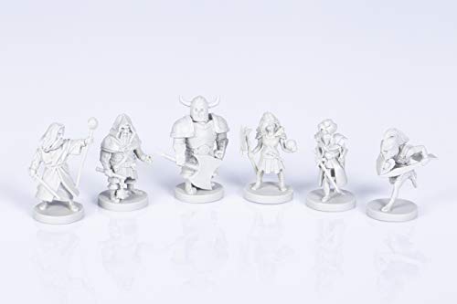 Set di 6 miniature da 5 cm altamente dettagliate per il gioco base Karak, che sostituiscono le pedine in cartone degli eroi.