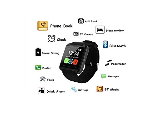 Albitastore U8 Smart watch/Orologio Intelligente U8/Orologio Bluetooth/orologio Android/orologio per la salute con Touch Screen e fotocamera, Batteria a lunga durata in tempo di attesa per telefoni Smartphone Android e iOS di iPhone (Nero)