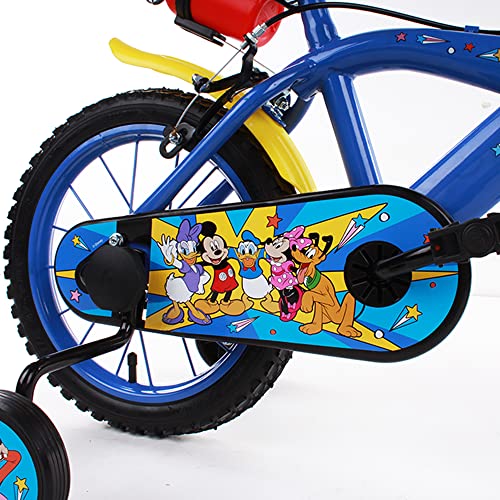 la bicicletta da 14 pollici bambino di Mickey Mouse è specificamente studiate per accompagnare i vostri figli nel mondo delle due ruote dai 3 ai 5 anni di età. La bicicletta 14 pollici è stabile e sicura grazie alle rotelle laterali removibili, agli pneumatici tassellati con camera d'aria e sicura grazie di freni anteriori e posteriori di tipo caliper