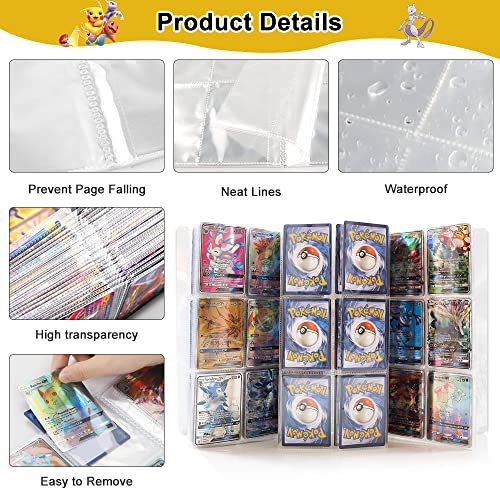 【Materiale Premium】Le album di carte sono realizzato in PVC resistente, che è garantito per essere utilizzato a lungo. La pellicola protettiva trasparente impermeabile, antigraffio e antipolvere può proteggere bene le tue carte e fornire un buon spazio di archiviazione per le tue preziose carte.