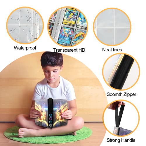 COMODO DA USARE - Album per carte da collezione con cerniera e cinturino da polso, è facile da trasportare e assicura che la carta non vada persa durante lo spostamento. Anello a D a 3 fori con costruzione solida, le cartelle possono aggiungere pagine in qualsiasi momento!