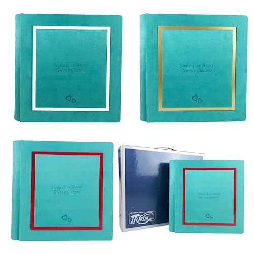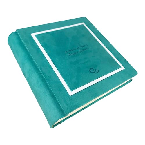 Album Fotografico Artigianale Elegante in Tessuto Alcantara, Personalizzabile con Incisione. Ideale per Matrimonio, Anniversario, Comunione, Battesimo, Tutti gli eventi (Verde Smeraldo)