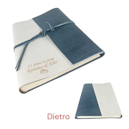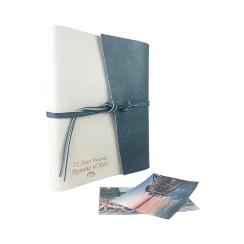 Album fotografico - Double Vintage - produzione artigianale in similpelle, personalizzabile con incisione. Ideale per Matrimonio, Anniversario, tutti gli eventi (Con Incisione, Polare - Blu)