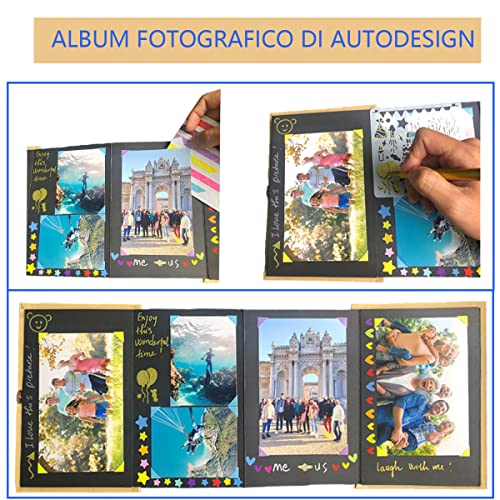 Album Fotografico Fai da Te, Scrapbooking Album Foto 18 Pagine e 2 Penne Colorate, Adesivi e Stencil Scrapbook, Matrimonio Compleanno Regalo Mamma Donna Bambina Ragazza Clip di Viaggio(8')