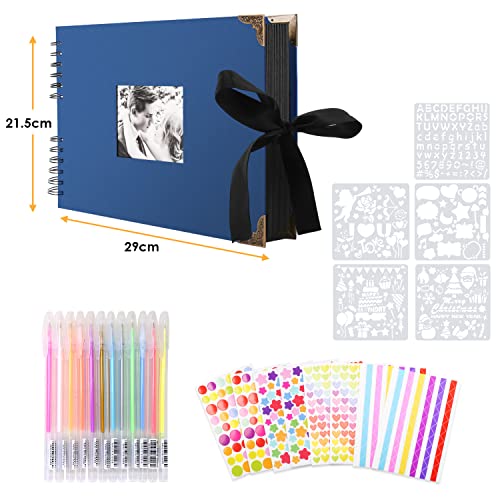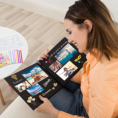 Album fotografico per scrapbooking a spirale, 80 pagine nere, fai da te, 2 angoli per foto, 6 adesivi, 5 stencil, 12 pennarelli colorati, per anniversario di matrimonio, compleanno, Natale