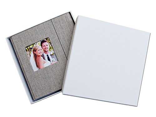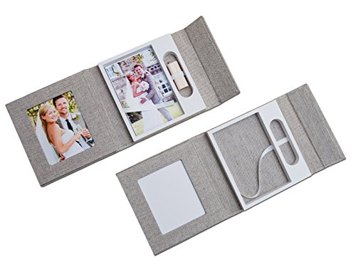 Album di matrimonio con spazio per penna USB In tessuto di tela grigia.