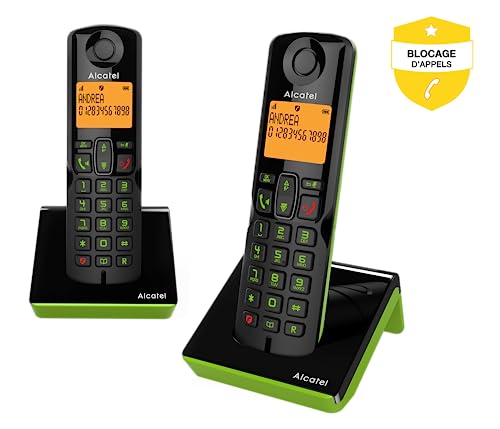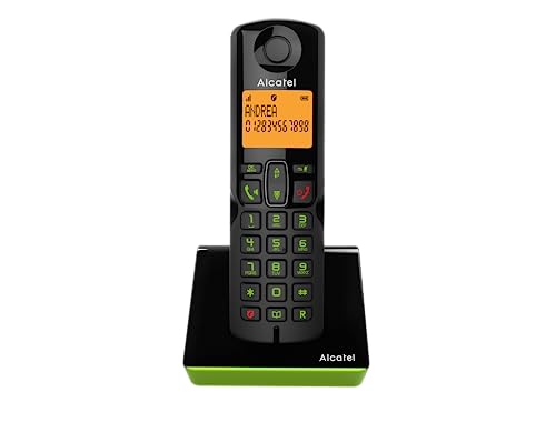 Alcatel S280 NERO/VERDE Telefono Cordless DECT con Blocco delle Chiamate Indesiderate, Ampio Display Retroilluminato Arancione, funzione Vivavoce, 3 Tasti di Memoria Diretta