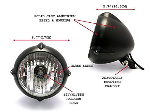 Alchemy Parts 6.7" 12V/55W Nero Opaco Inferiore Supporto Moto Trike Faro