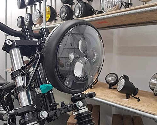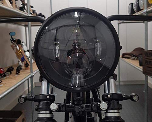 Alchemy Parts Moto Proiettore Faro - LED 7.7" Nero Opaco 12V 66W per Cafe per Moto & Scrambler - Leggero