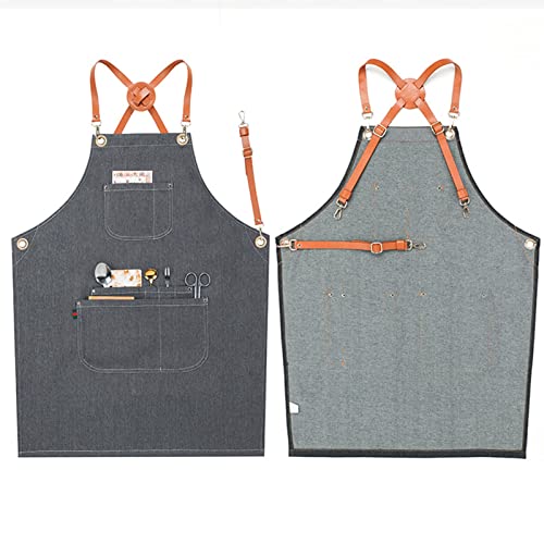 ALCKO Grembiule Jeans, Grembiule da Lavoro Multifunzionale Regolabile, Sii ApplicabileFalegname Tatuatore Fabbro Pittore Barista, Design A Tracolla (Color: Blue, Size: XL)