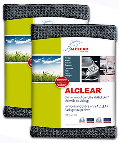 ALCLEAR 820901M_2 Panno in micro fibra super asciutto per un'auto perfetta, vernice, moto, cucina e casa - panno per stoviglie in microfibra - panno morbido per asciugare - 80x55 cm, set di due, Grigio