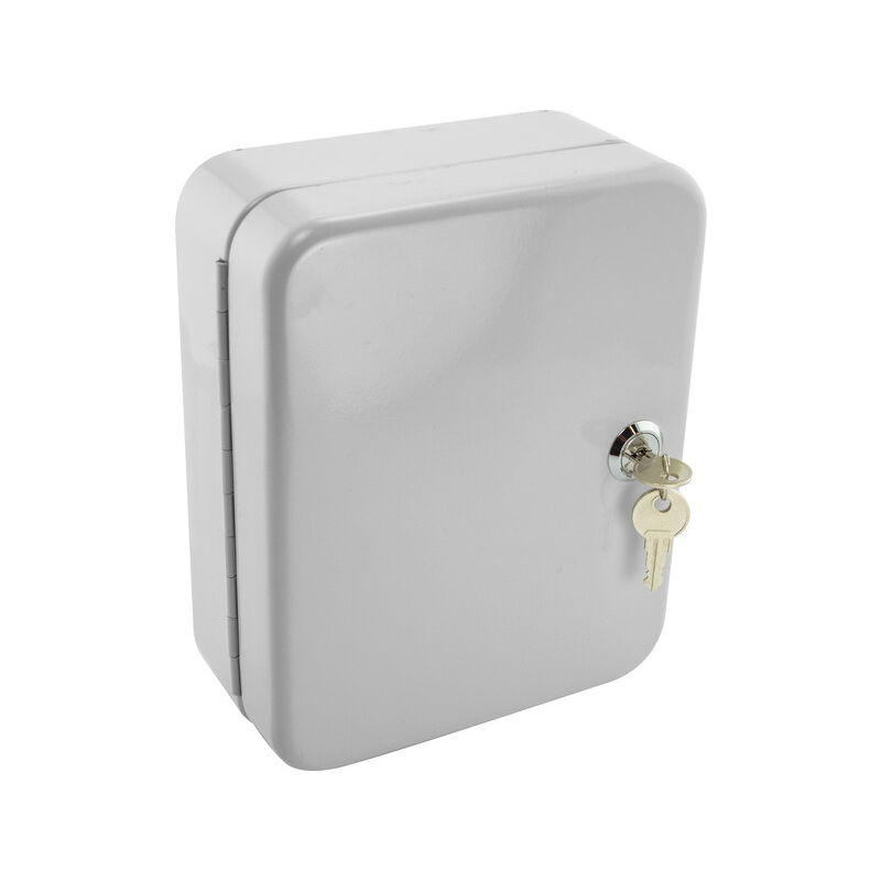 Armadietto portachiavi, verniciato grigio all'interno e all'esterno, per 40 chiavi. Chiudibile con serratura a cilindro incl. La consegna include il materiale di montaggio, ma senza portachiavi. Dimensioni 200x160x80mm.