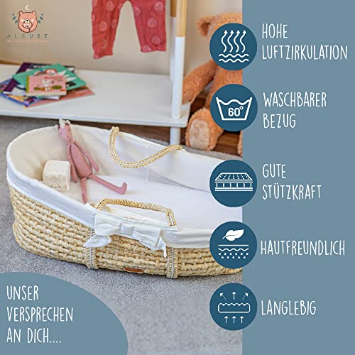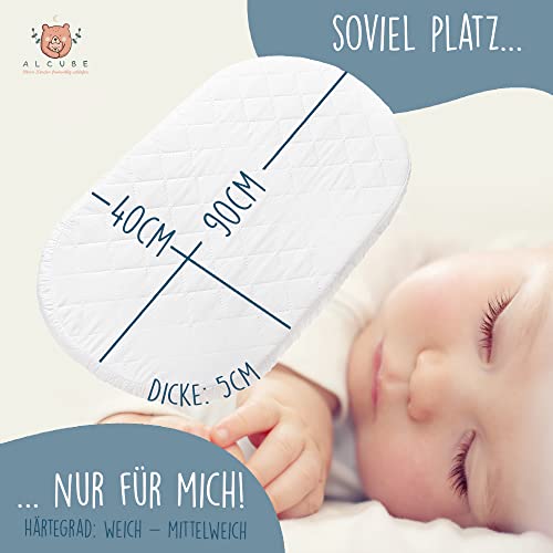 Alcube SLEEPY Materasso 40x90 per culla Moses I Materasso per culla con fodera rimovibile - lavabile a 60 gradi I Materasso ovale per bambini combinabile con lenzuola con angoli e cuscino