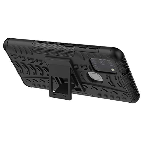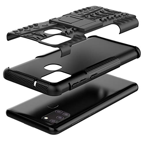 ALDHOFA Cover Samsung Galaxy A21s, Doppio Strato a Ibrida Phone Caso per Samsung A21s-Nero
