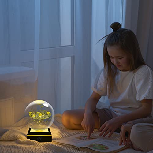 ALEENFOON Cristallo 3D Sistema Solare Ball Luce Notturna Night Light con Base LED multicolore per la decorazione domestica Regali per bambini (Astronomy)