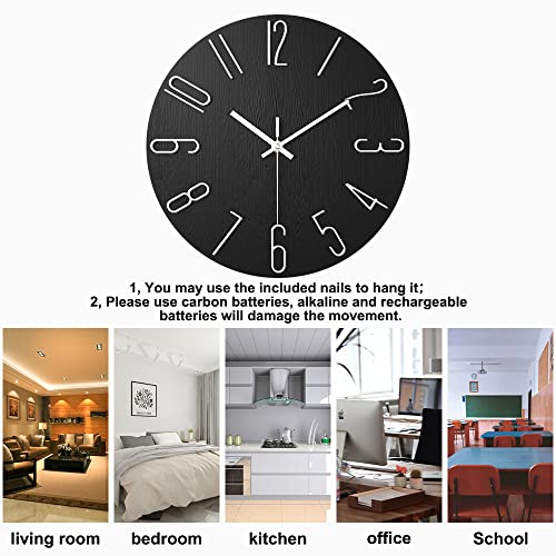 ALEENFOON Orologio da Parete al Quarzo Silenzioso Moderni Cucina 30 cm, 3D Numero Sottile Quarzo da Parete Interno Venatura del Legno Senza Cornice Orologio Sospeso da Muro (Nero)