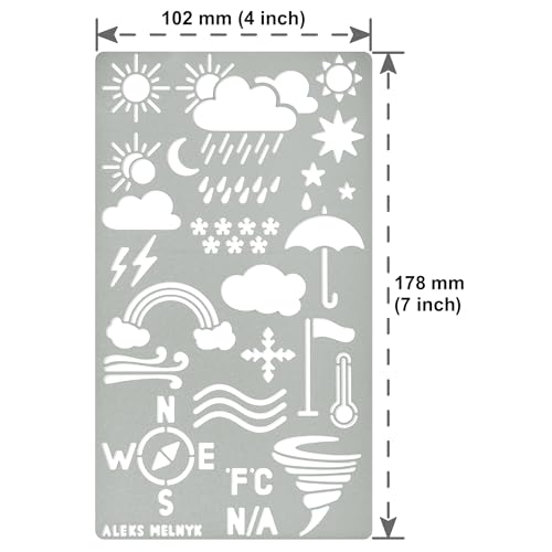 Aleks Melnyk 14 Bullet Journal Stencil Metallo/Previsioni Meteo, Simboli/Acciaio Inossidabile/Planner Stencils Journal/Notepad/Diario/Scrapbooking/DIY Drawing Template Stencil