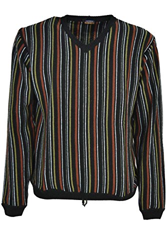 Alessandro Tellini Maglia Uomo Scollo V Nero Righe Ruggine Verde Bianco Grigio Nero, XXL