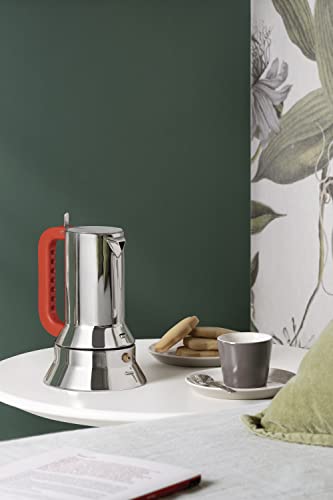 Alessi 9090/6 100 Manico Forato Caffettiera Espresso di Design 6 Tazze, in Acciaio Inossidabile 18/10 con Fondo Magnetico, Manico Forato e Colorato, Arancio