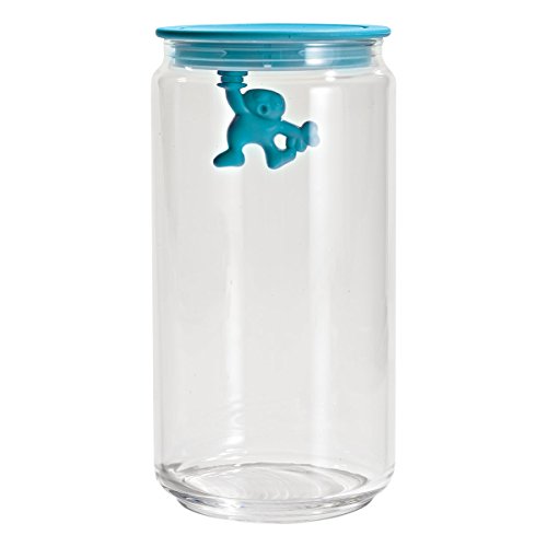 Alessi AMDR06 AZ Gianni a Little Man Holding On Tight Barattolo Ermetico in Vetro con Coperchio in Resina Termoplastica, Azzurro