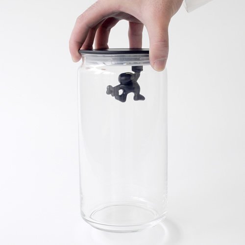 Alessi AMDR06 Gianni a Little Man Holding On Tight Barattolo Ermetico in Vetro con Coperchio in Resina Termoplastica, Nero, 140 cl